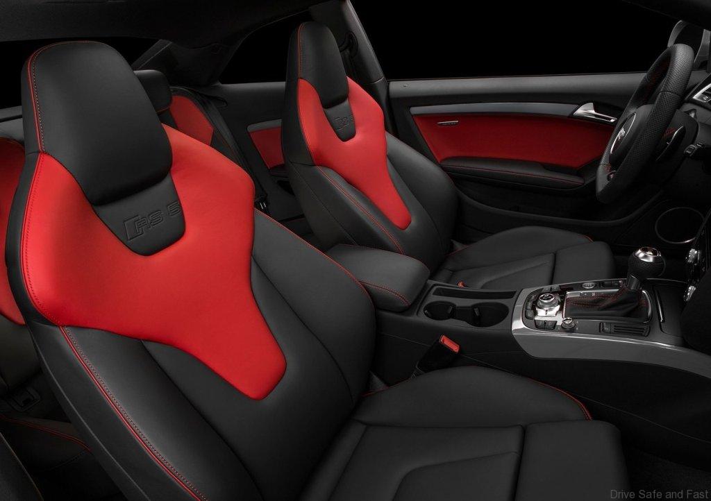The 2015 RS5 Coupe Sport edition features distinctive and sporty design elements on the interior and exterior. The vehicle’s already compelling RS-specific performance design is accentuated with 20” 5-V-spoke design wheels and red brake calipers, and is available in Daytona Gray pearl effect, Nardo gray and multiple Audi exclusive paint colors (optional) that are complemented by Crimson Red Fine Nappa leather interior accents.