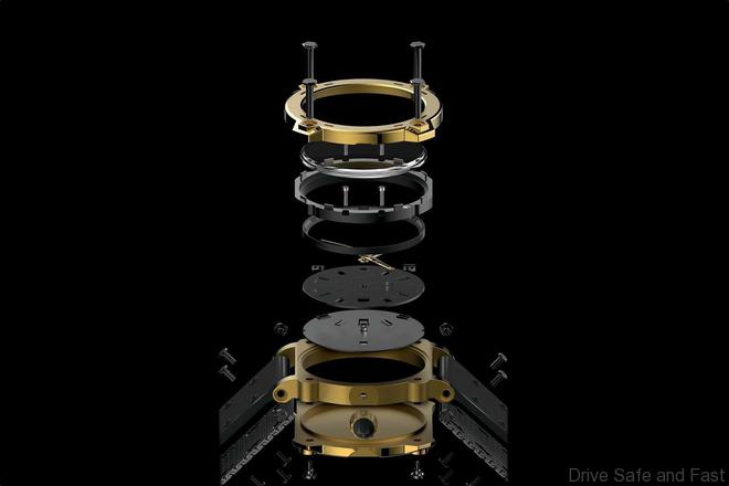 Bulova has produced a new watch that features a 24-Karat gold case, sort of. “This is the first watch case made of 999.9 pure gold and uses a proprietary process developed by Bulova; several worldwide patents are pending,” according to Bulova. Although, it should be noted as shown by the exploded diagram below, part of the case uses materials which are not gold. The case, bezel and caseback are 24K gold, constructed in what Bulova refers to as a “unique capsule form” and anchored with grade-5 titanium components.