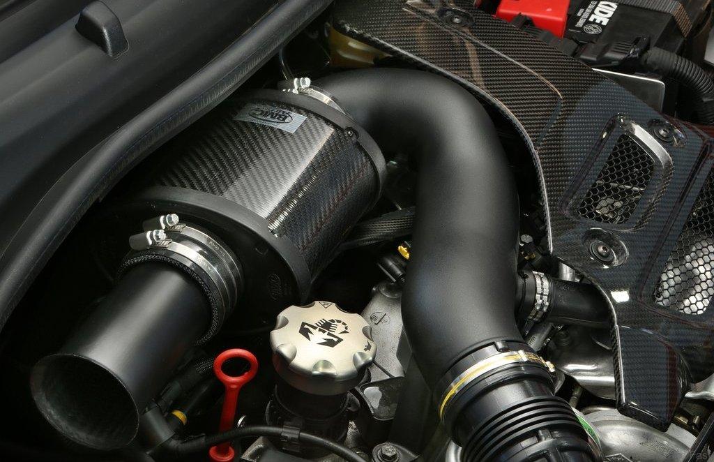 To guarantee power and maximum engine output, the dynamic aspiration filter casing with carbon finish was developed in collaboration with BMC, world leader in the sector of filters and air intake devices intended for racing.