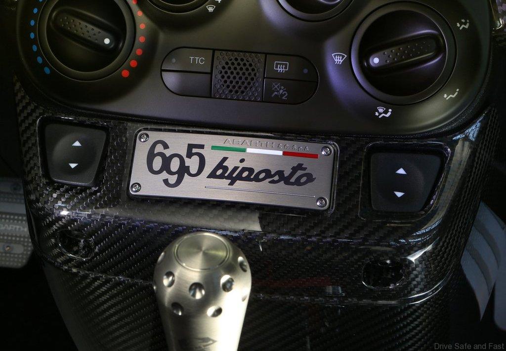 The list of technical and performance upgrades wouldn’t have been complete without a kit destined for the track, dedicated to drivers who want to take their 695 biposto to the limit: in the “track kit” are the Abarth Corse by Sabelt seats with visible carbon shell, the 4-point seat belts type-approved for sports use, the MXL2 digital data logger by Aim for continuously monitoring every single facet of the car’s performance and the type-approved helmet with 695 biposto customisation.