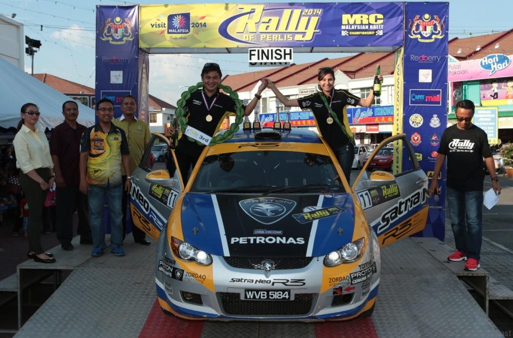 Kenneth Koh and Nicole Perreau won the final round of the 2014 Malaysian Rally Championship (28-30 November) in the 2WD and P10 (1600cc) categories for PROTON R3 Rally Team. It’s a fitting finale to the season despite the retirement of Karamjit Singh and Jagdev Singh in the first leg of the rally due to a fire.