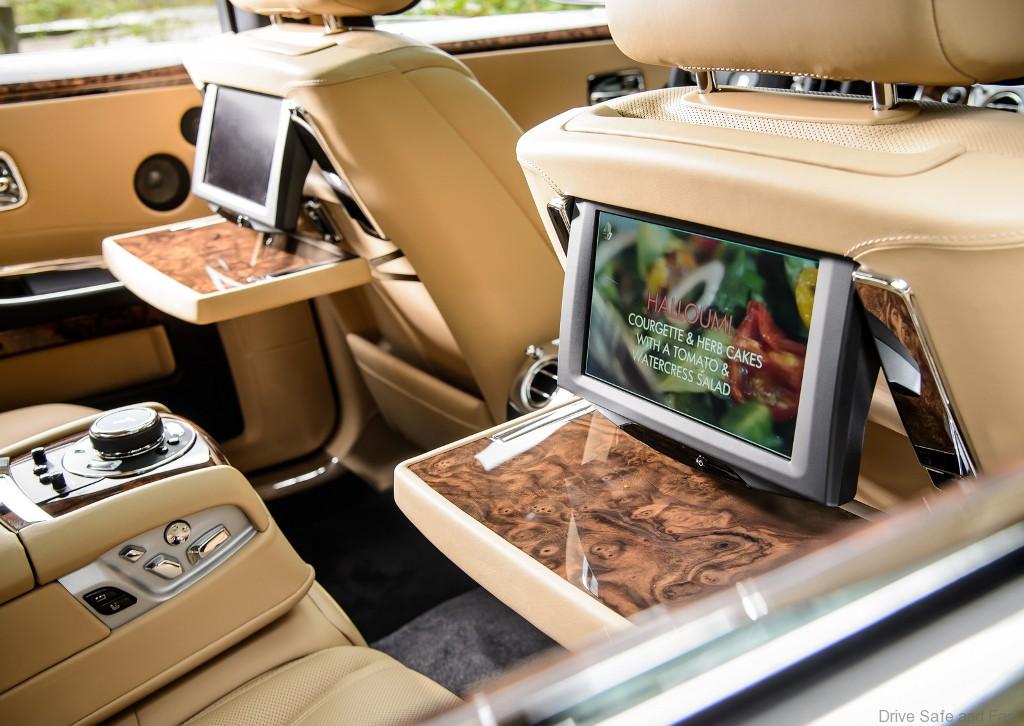 Key to this is the discreet placement of the car’s technological functions. Accessed through a one-touch call button or the Spirit of Ecstasy Rotary Controller, on-board Wi-Fi facilitates email, file sharing, telephony and video-conferencing. The user is also able to watch televised business news in order to remain ahead of the game. Navigation assistance is summoned by the same one-touch call button. Then by simply saying “Navigate to Piccadilly in London” or wherever else the owner wishes to go, directions that anticipate and avoid unnecessary delays are offered.
