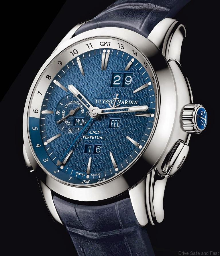 The Perpetual Calendar Manufacture Boutique Edition adopts the same self-winding movement UN-32 in a 43 mm platinum case here framing a new elegant blue dial, nicely matched to a blue alligator leather strap.