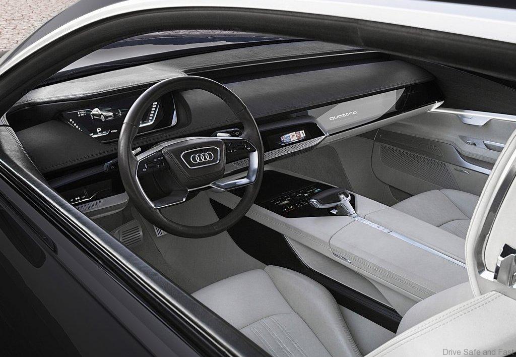Further emphasizing its push towards production-ready piloted driving, Audi is showcasing a piloted driving version of its prologue concept hybrid which was unveiled at the Los Angeles Auto Show in November 2014 and recently at the 2015 CES. The hybrid powertrain has a muscular 4.0 TFSI V-8 working together with a powerful e-motor. System power output of 677 hp and a combined torque of both engines of 950 Nm enable the Audi prologue piloted driving to accelerate from 0 to 100 km/h (62.1 mph) in 3.5 seconds. CO2 emissions are 185 g/km.