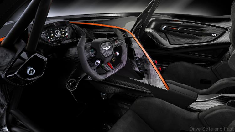 The monocoque (carbon fibre) and body (more carbon fibre) are both constructed by Multimatic- a long-term partner of Aston Martin which specialises in carbon-fibre work. There’s a limited slip differential, driven by a light weight prop shaft (more carbon fibre), and Brembo calipers that clamp on ceramic racing discs (more carbon… wait, no). The gearbox is a 6-speed sequential from Xtrac- the same company that supplies drivetrains for Proton’s Satria Neo S2000 rally cars. Track-derived pushrod suspension with anti-dive geometry is complemented by Multimatic’s Dynamic Suspension Spool Valve (DSSV) adjustable dampers and anti-roll bars front and rear, driver-adjustable anti-lock braking, and variable traction control. FIA Safety Regulations are naturally complied with for the Vulcan.