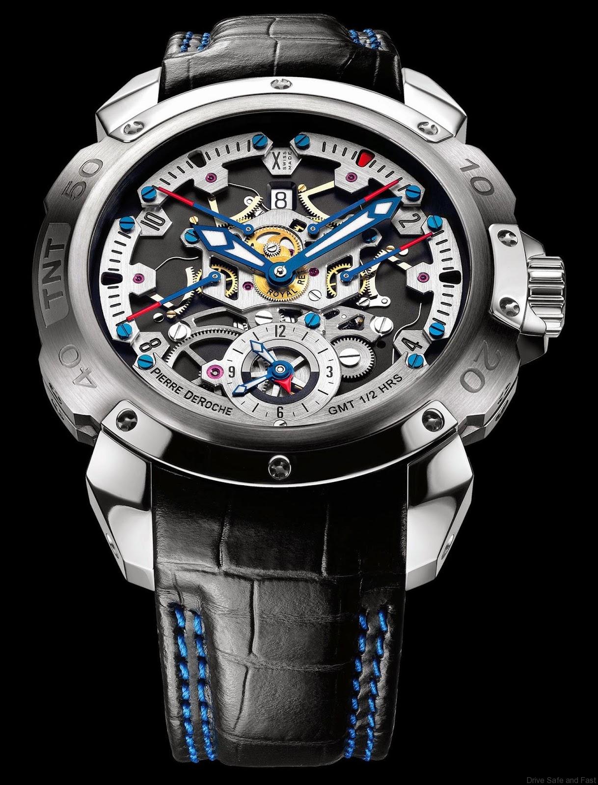 Swiss luxury watch maker Pierre DeRoche announces a new addition to its popular TNT Royal Retro line. The new TNT Royal Retro model is equipped with a GMT display adjustable to the nearest half hour not via a corrector, but instead using the crown.