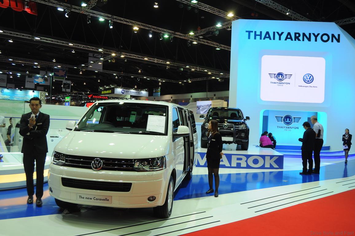 In Thailand, Volkswagen has a variety of distributors. The one that focuses on passenger cars merely imports the Golf GTI and the Scirocco, and neither of these models were in display for the motor show. Instead, we have the more commercial-oriented distributor, Thaiyarnon. On display was the new Caravelle, which was also customised in certain respects by the distributor in order to improve luxury standards.