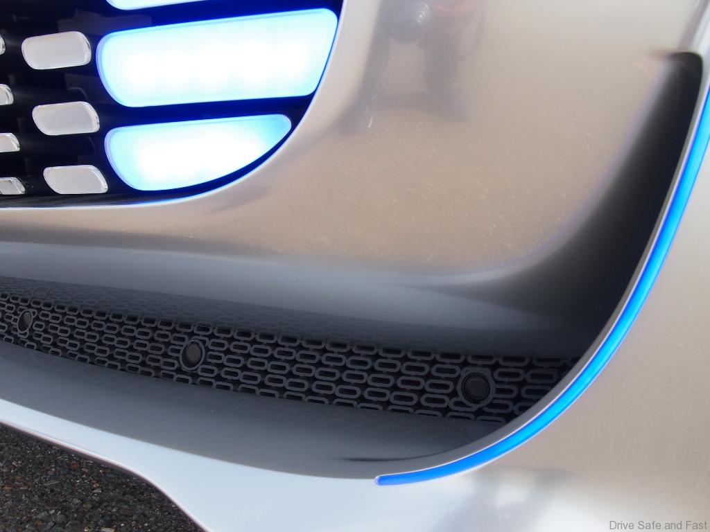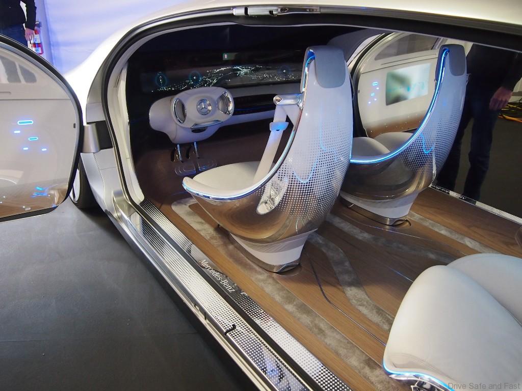 Design of the F 015 is impressive. It is a large 17-feet long sedan (longer than the all new Mercedes S-Class) with 4 large wide opening doors. There are no protruding bumpers on the car. Small headlights sit recessed and the front grille is made out of dozens of LED lamps. The same lamps are used in the rear. These LED lamps can spell out ‘Stop’, ‘Go’ and so on to interact with pedestrians and other road users. The F 015 also ‘speaks’. Yes, it can interact with other pedestrians at cross walks and pedestrians can also talk back or wave to the F 015 to move along.