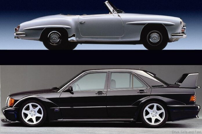 2015 marks big anniversaries for two Mercedes-Benz models, the 1955 Mercedes-Benz 190 SL roadster and the 190 E 2.5 16 Evolution II from 1990.