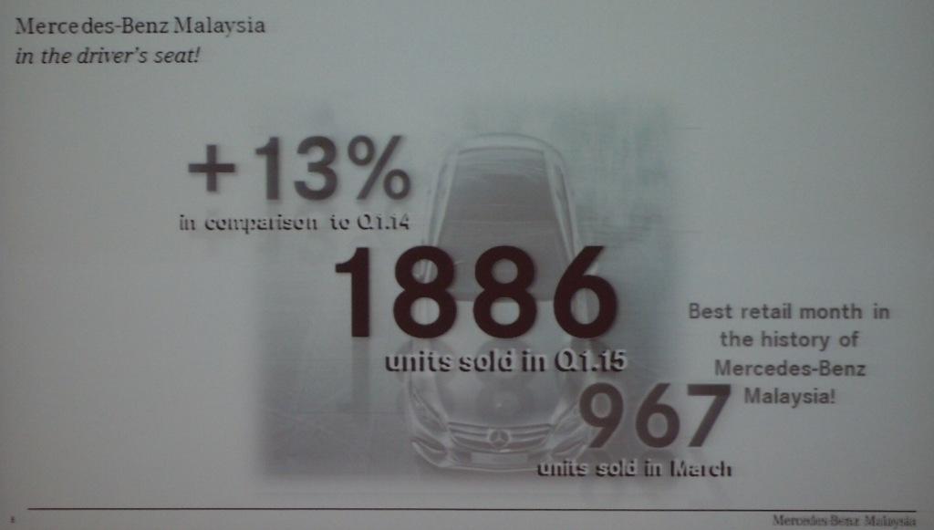 The uptrend in sales is attributed to the success of the newly-introduced E300 BlueTEC Hybrid which made its Malaysian debut in January 2015. During the January to March 2015 period, 638 units of the E300 BlueTEC Hybrid were sold.