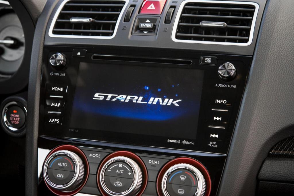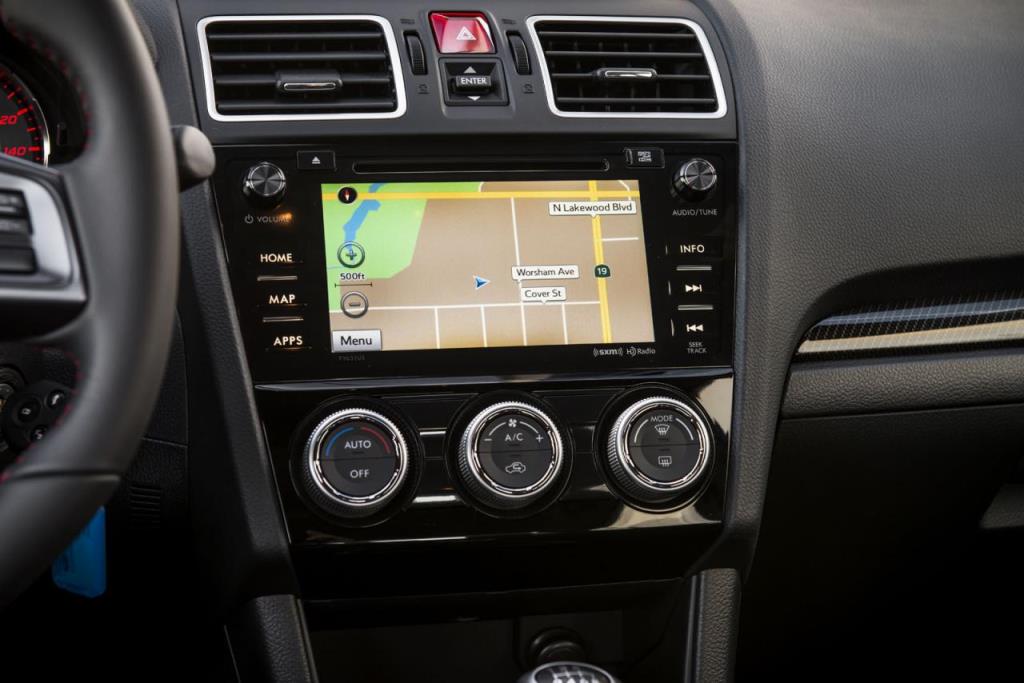 The Subaru Intelligent Drive (SI-DRIVE) powertrain management system allows the driver to tailor the car’s driving characteristics by choosing from three selectable modes – Intelligent, Sport and Sport Sharp – using a rotary dial on the center console. SI-DRIVE alters vehicle performance characteristics by regulating the engine control module and by fine-tuning the electronic throttle control system. Alcantara® seating surfaces, accented by red and black leather bolsters and red stitching, set the tone for the STI’s driver-focused interior. Rich-looking appointments and details abound, including soft-touch materials for the dashboard, door trim and center console armrest. A multi-information central display with a 4.3-in. LCD screen provides displays for numerous vehicle system functions, including the standard rear camera, boost gauge, Bluetooth, climate control settings and a VDC screen showing traction control operation. The display can also provide a vehicle self-check and maintenance reminder.