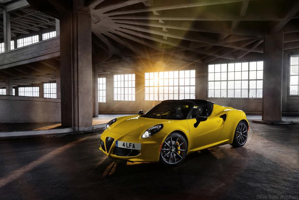 In addition to the standard lightweight fabric roof, Alfa Romeo will offer a carbon fibre hardtop as an option, but you’ll have to wait for that. The covered xenon headlights now come as standard for the Spider. There is an optional carbon fibre air intake system which is better at keeping the transmission cool, which ought to help with track days. As pictured, the Spider comes in a new Giallo Prototipo yellow paint option.