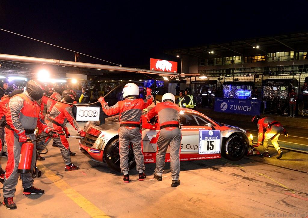 After qualifying 32nd, the team elected Yoong to take the first stint to take the car through traffic. The first six hours went smoothly, with Lee taking over from Yoong, followed by Thong and Cheng. During the night, a mix of dry and wet conditions added to the challenge and drama of the race. Lee was the first to encounter the rain, then Thong, who had originally been scheduled to take a single night stint, but had a second stint added after putting in some superbly quick lap times. Driving duties were then handed to Yoong and Cheng, who each drove a double stint, with Cheng suffering a tire puncture following an incident in front of him. Overnight, the team moved up 10 positions and were 15th with seven hours remaining.