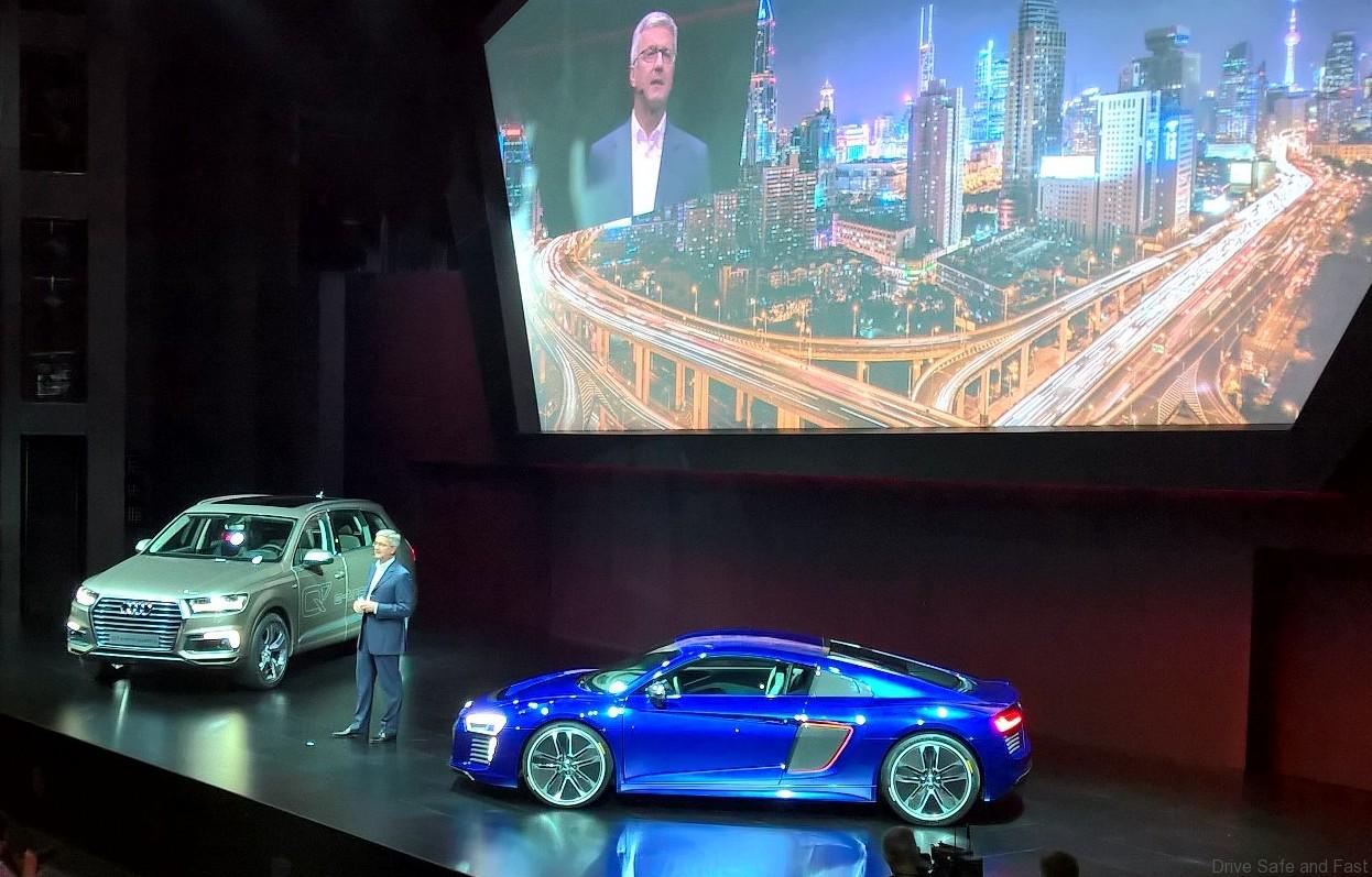 We attended the Audi keynote address in Shanghai and heard what Rupert Stadler, President, Chairman of the Board Management of AUDI AG had to say about the future of the Audi for new Audi owners. Key topics included piloted driving, new Audi connect solutions, new infotainment modules, operating and display concepts, and innovative developments in lighting technology. The biggest highlight was the Audi R8 e-tron piloted driving show car with a high-performance all-electric drive system.