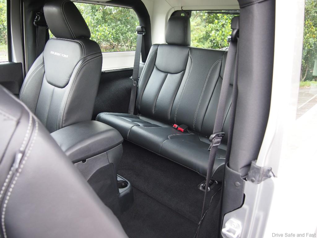 The first thing we noticed about the Rubicon, after we climbed up into the cabin, was how it is has stayed to its true heritage with a hard wearing very solid feel all around the cabin. The front seats are comfortable and even in the back row the seat were comfortable and offered sufficient support for our aging bodies. The driver sits high off the ground and has a clear and, almost, uninterrupted view in all directions. In this Rubicon the driver and passenger seats were adjusted manually and easy to get comfortable.