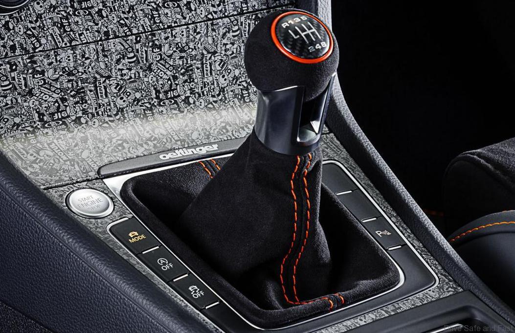 Another technical highlight is OETTINGER on the axles and brakes. On OETTINGER 500R there is no trace widening. Instead, the Friedrichsdorfer put on an aluminum front axle with a track width of 1 607 mm (Golf R, series: 1549 mm). Another highlight which also made of aluminum rear track handlebar with a track width of 1 578 mm (Golf R, series: 1520) should be mentioned. Six-piston high-performance brake calipers and two-piece, perforated and internally ventilated brake discs high performance (380 x 34 mm) with sports brake pads and steel flex brake pipes ensure excellent braking performance. The wheelbase amounts to 2646 mm (Golf R, series: 2637 mm).