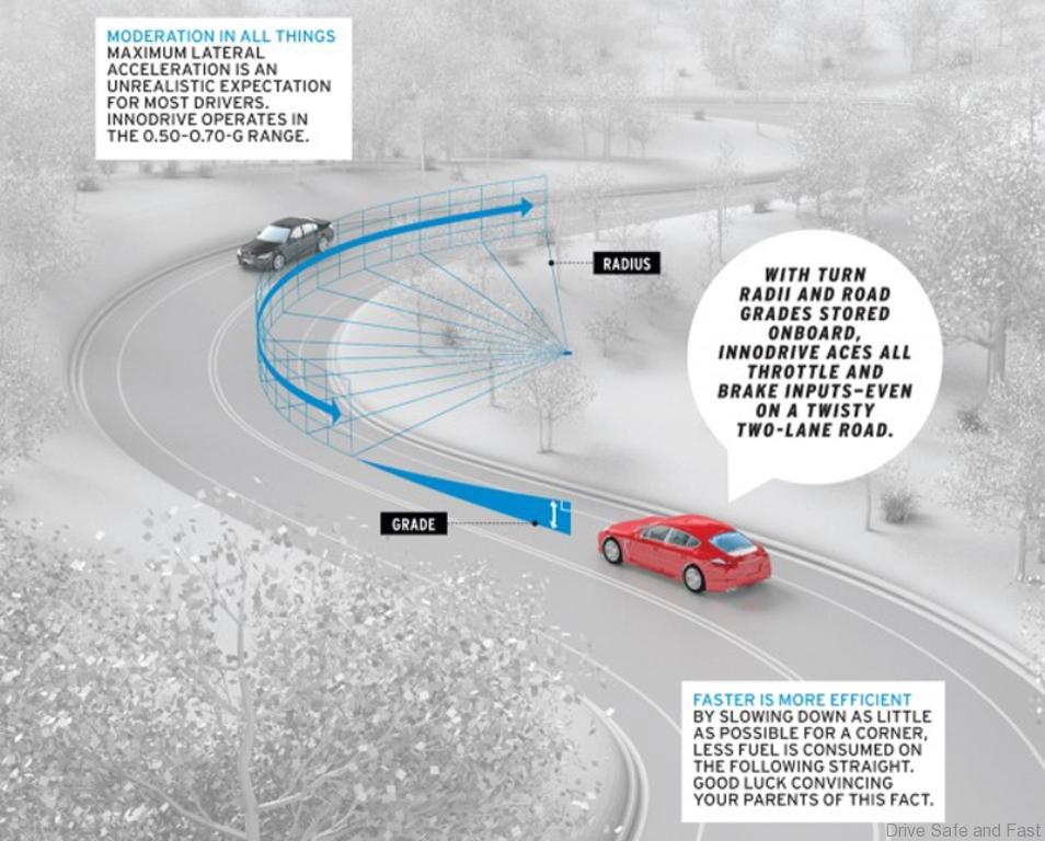 Porsche calls the new tech “InnoDrive” and it still has its limitations. The lateral forces generated from the turn can be adjusted to whatever comfortable or uncomfortable level the driver desires so long as it’s below .7g. Porsche say the system will help improve fuel efficiency and travel time but really, it seems like the sort of tech that’s just there to be a talking point.