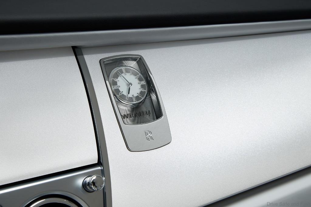 Being a Rolls-Royce, nothing but the best materials make it to the interior. Found inside are some of the finest silks, leathers and wood panelling that takes 9 days to lacquer.  A Bespoke Clock with a pearl effect decorates the interior as its predominant centrepiece.