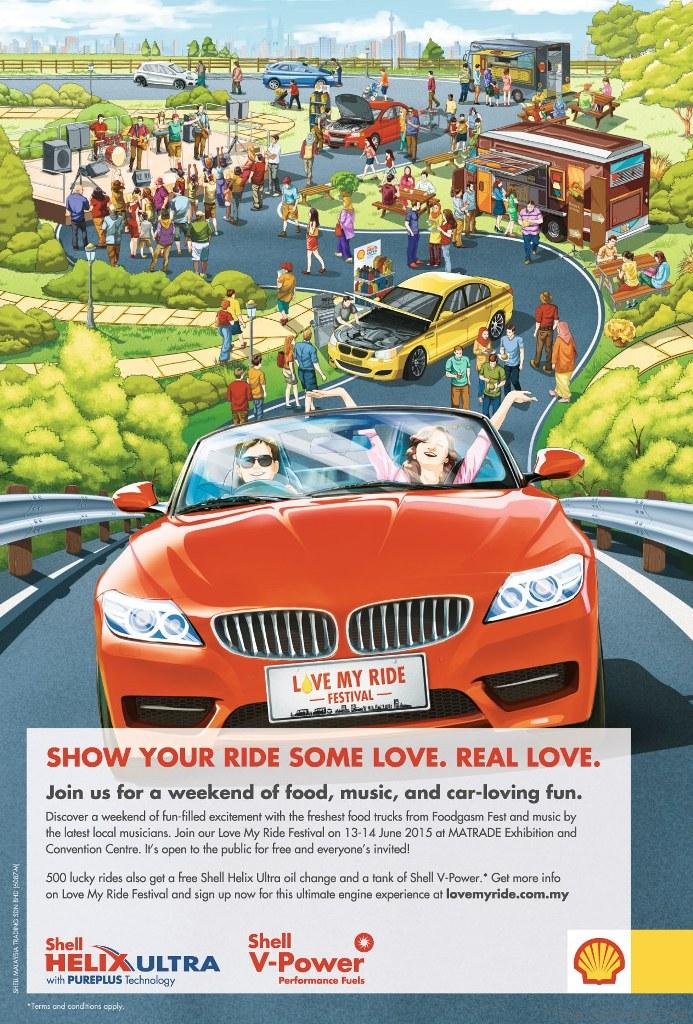 Five hundred lucky motorists will enjoy the ultimate engine rejuvenating experience for their cars at the upcoming two-day “#LoveMyRide” Festival organised by Shell Malaysia Trading Sdn. Bhd. This new, first-of-its-kind, festival for car lovers, featuring the unbeatable combination of Shell Helix Ultra with PurePlus Technology and Shell V-Power, will be held at MARTRADE Exhibition and Convention Centre (MECC), Kuala Lumpur, on June 13 and 14, 2015 from 10.00 am till 7.00 pm.