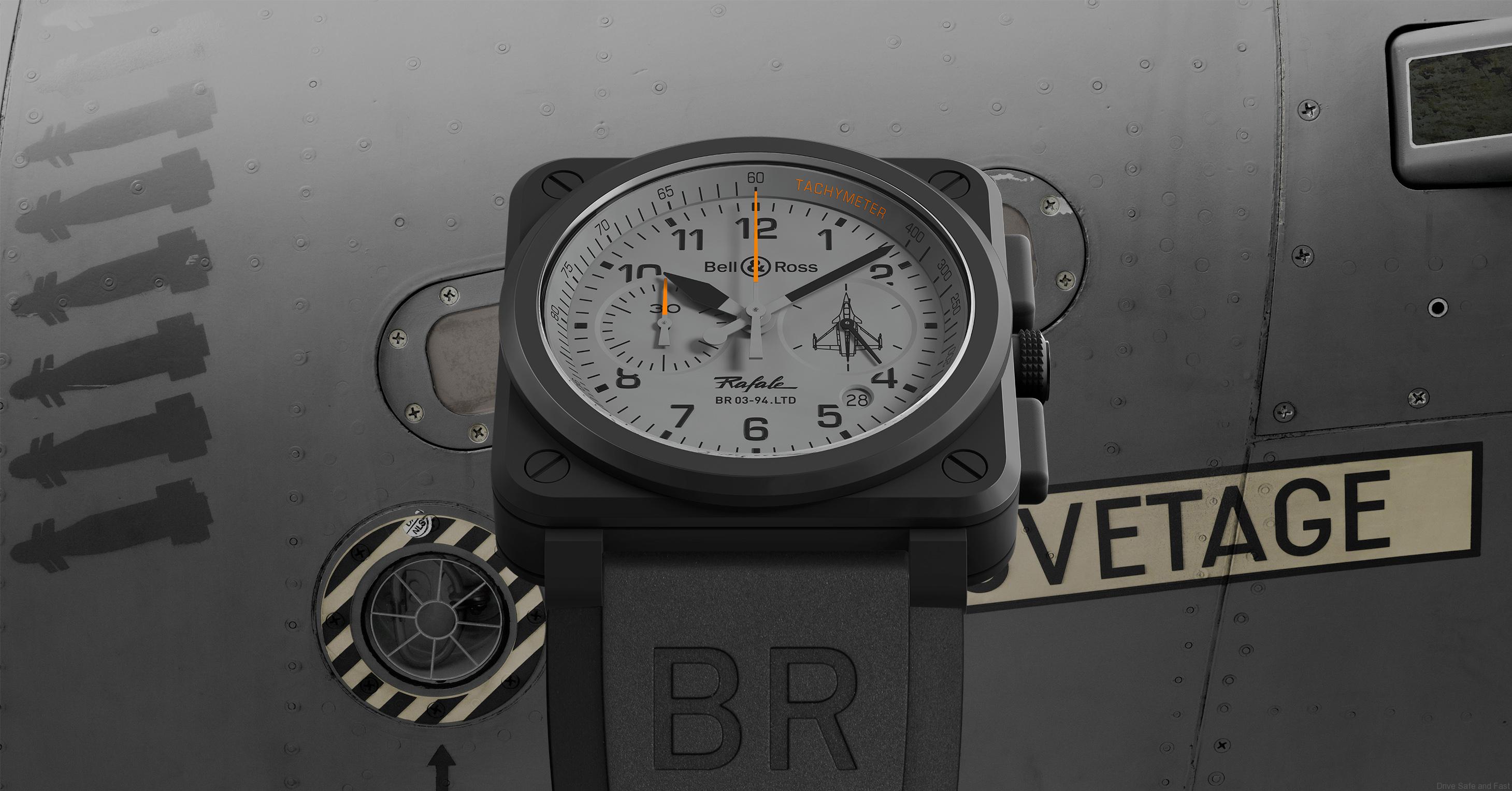 Revealed at this year’s Basel World convention, this 500-unit run takes the Bell & Ross aesthetic and identity well into the future via all-new style and military technology transfer. Having moved on from PVD to make many of its BR series cases in ceramic, Bell & Ross is now celebrating 10 years of the world’s most recognisable square watch with a series of limited editions that focus attention back on its inspiration. Aviation, and in the case of the BR03-94 Rafale, the innovative fighter jet built by Dassault Aviation for the French Navy and Air Force.