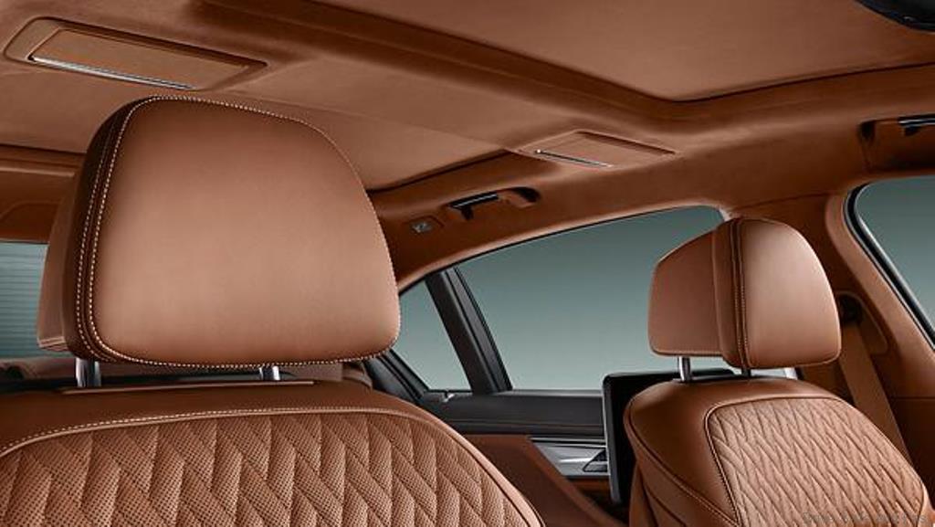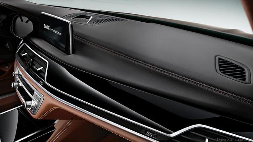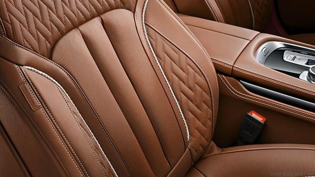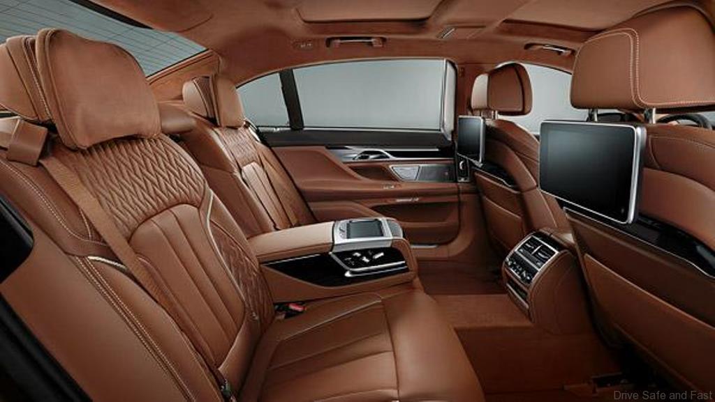 Unlike the sporty 2-door, this 7-Series has very plush looking seats that come in brown with a piano black finish.