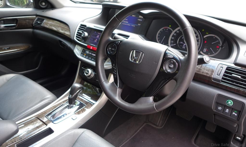 A truly unique addition to the Accord is the side view camera. It’s so brilliant it makes you wonder why this hasn’t picked up in the automotive industry yet the way it should. It works by using the video feed from a camera under the passenger side wing mirror to give the driver a digital version of his side mirror on his centre console. So every time the left turn signal is engaged you have a small a screen to quickly glance at to check if the lane is clear. It can also be activated manually with a press of a button located at the top of the stalk.