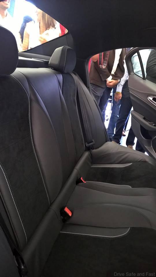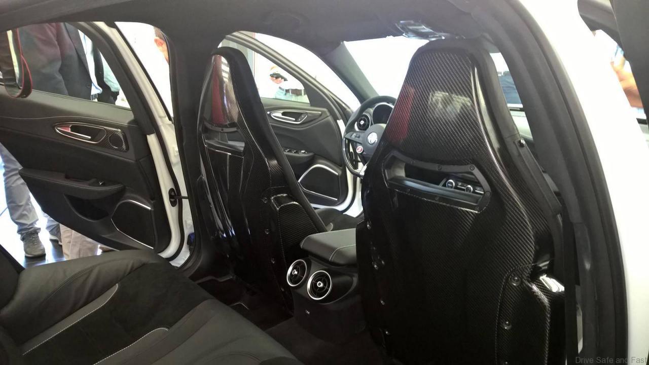 Carbon fibre even on the backs of the seats! Also note the circular rear air vents denoting sportiness.