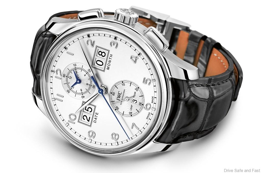 After all, this is the birthplace of the digital date display. Indeed, the brand ‘s museum still contains a collection of Pallweber pocket watches, from 1884 onwards, believed to be the first examples of this clever function. While it disappeared shortly after it was invented, supposedly because it was so unfamiliar it took too much time to read, it has made a comeback lately. However, this is the first time a digital display makes its way inside a Portugieser, and interestingly the brand has chosen to use it for the month and date indication. Another curiosity is the brand’s decision to give the watch such a descriptive name, but fail to mention it also features a flyback chronograph. But what’s most remarkable about the watch is the balance and legibility of its dial. While the date and month are displayed prominently in apertures aligned across the dial, slightly above the 9 to 3 o’clock line, the chronograph and seconds subdials face each other at 12 and 6 o’clock.