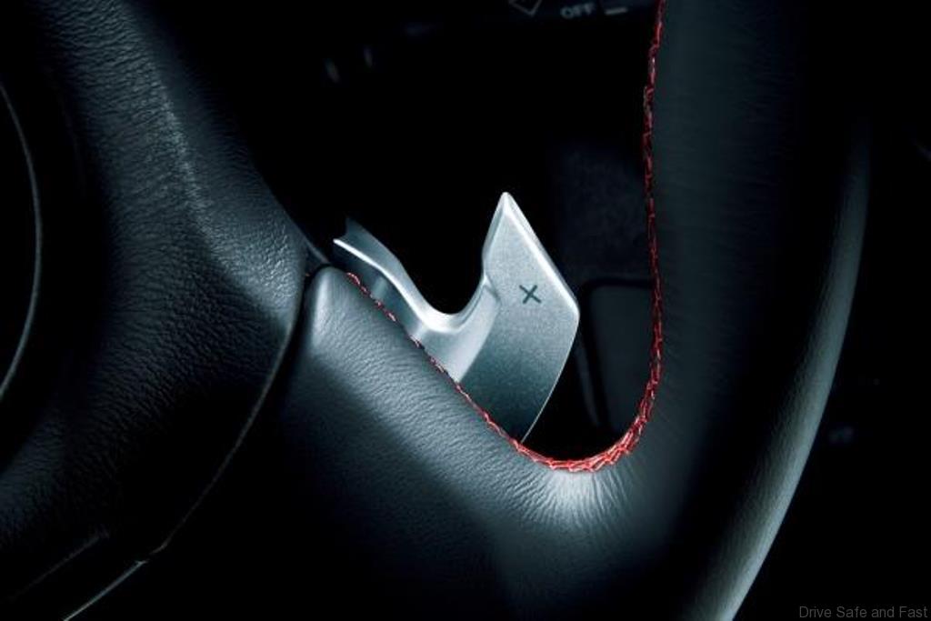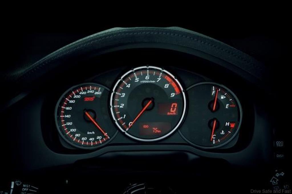 - Exclusively-made leather lapped steering wheel (quality-feel leather with “STI” ornament and red stitching)
