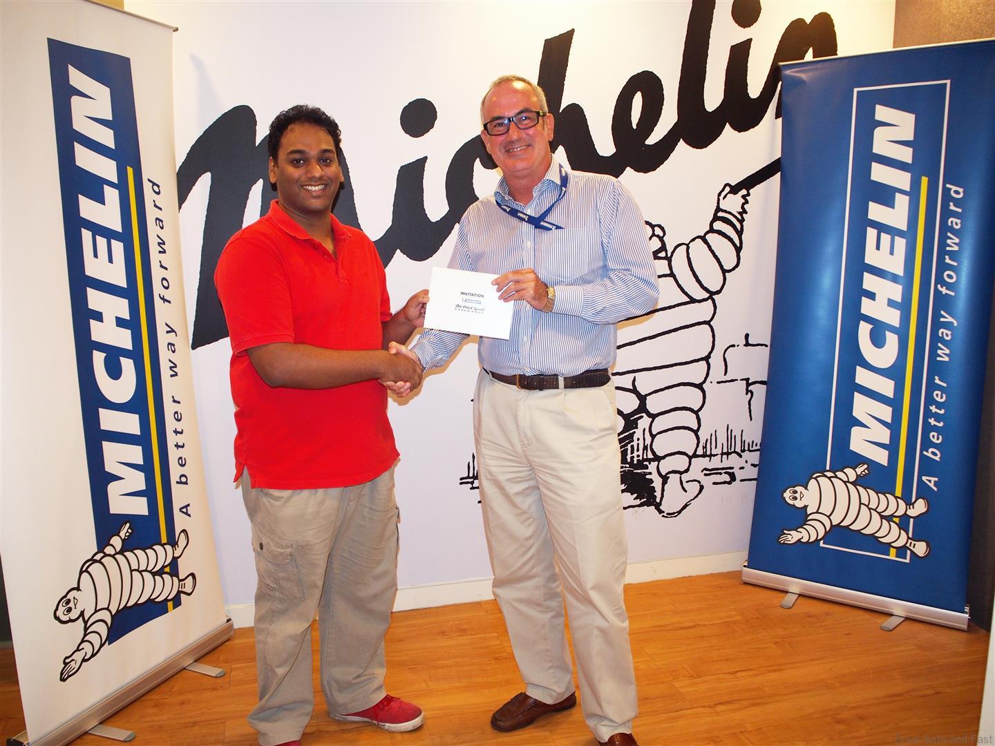The Malaysian contingent comprising Ong Koon Liang, Kamahlaan Thiagarajan, Tan Eng Tat, Khee Chun Hiew and Ling Yew Heng, today received their winning passes to Michelin Pilot Sport Experience 2015 from Michelin Malaysia Managing Director, Beltran de Yturriaga to participate in the exclusive event to experience Michelin’s passion for racing, commitment to safety and a track to street total performance.