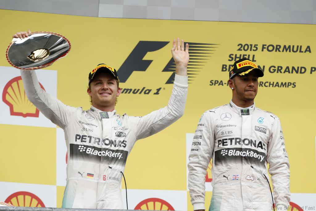 This victory marks Hamilton’s 39th F1 win, and the 6th win of 2015. It also marks his 80th F1 podium through his career, and puts him on par with Senna for all-time standings. Rosberg’s podium is his 36th of his F1 career, and this makes the seventh F1 race this year with a 1-2 finish for Mercedes-AMG.
