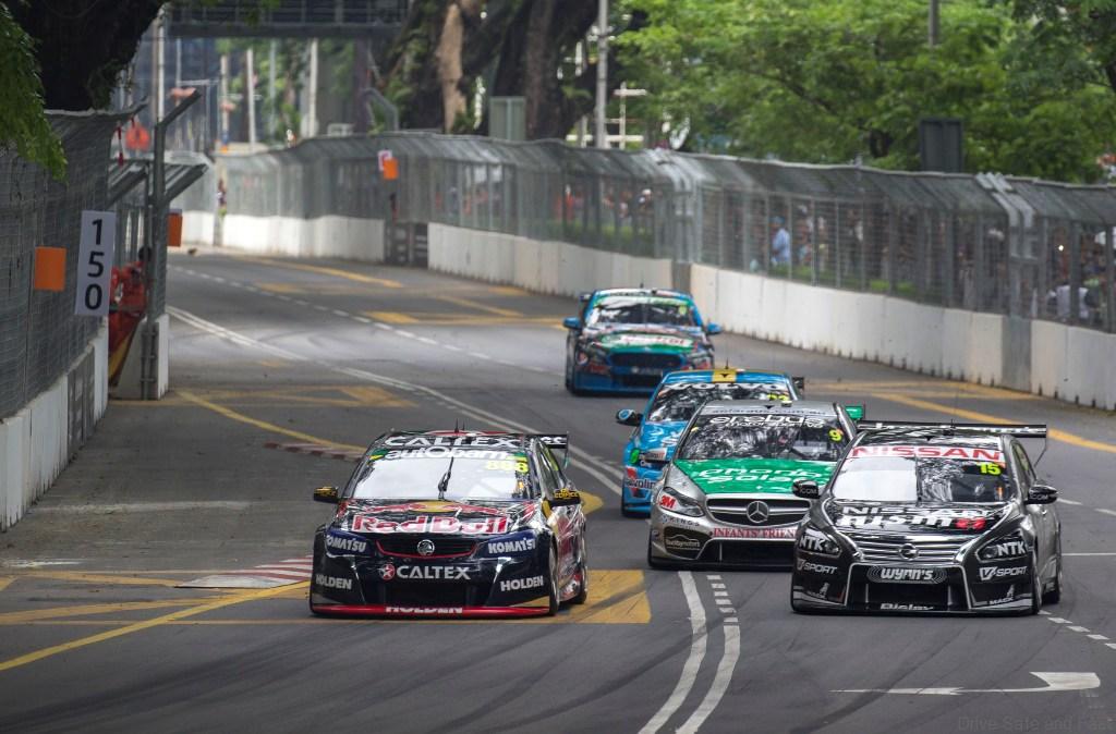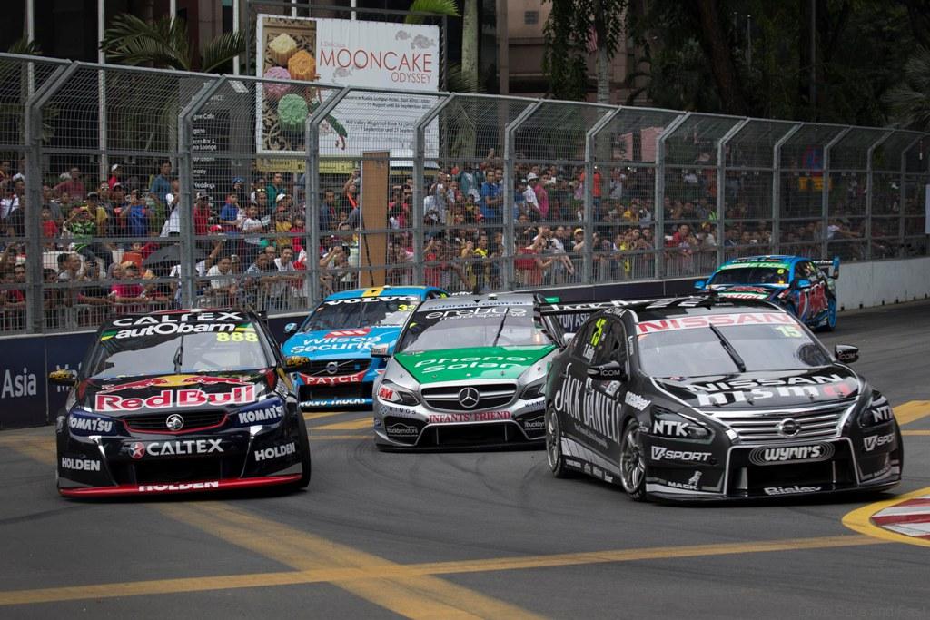 Todd Kelly in his Nissan V8 Supercar was successful in holding back Volvo Polestar driver McLaughlin this afternoon in the Malaysian capital as he took the 1st ever win in the KL City Grand Prix challenge. The five V8 Supercars fought a close fight fender to fender in this inaugural race but it was the Nissan V8 that took the final flag.