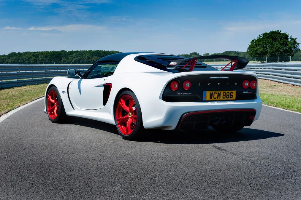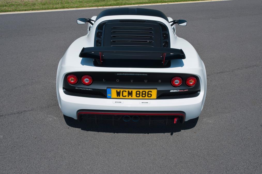 The Exige 360 Cup uses the track proven aero package from the Exige V6 Cup with an aerodynamically optimised front splitter, rear diffuser and wing. Together with the flat underside these aerodynamic aids offer 42 kg of downforce at 100 mph (160 km/h).