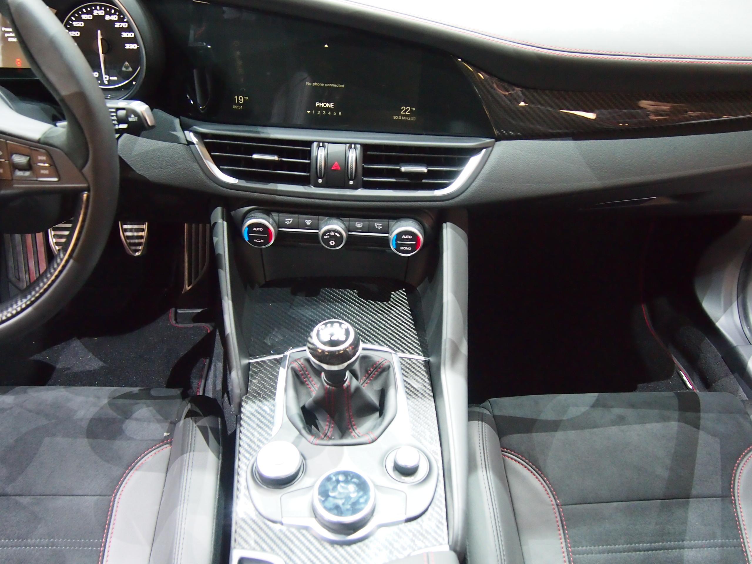The Giulia Quadrifoglio has the fastest acceleration in its class. The car goes 0 to 100kph in 3.9 seconds, compared with the BMW M3’s 4.1 seconds and 4 seconds for the Mercedes AMG C63 S. The Alfa will be offered only with rear-wheel drive and a manual transmission. A carbon fiber hood and roof help reduce weight to about 1,500kg.