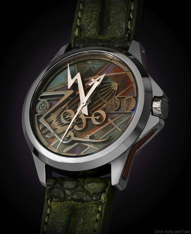 Yvan Arpa led Swiss luxury watch maker ArtyA creates a unique timepiece in association with Kerbedanz, a young haute horlogerie brand established by Aram Petrosian. For this watch, ArtyA designed a custom case to accommodate the enamel dial designed by Kerbedanz. The chiseled design is made using the cloisonne technique: each colored enamel compartment is enclosed by a metal structure. The dial design of this masterpiece pays tribute to Led Zeppelin.