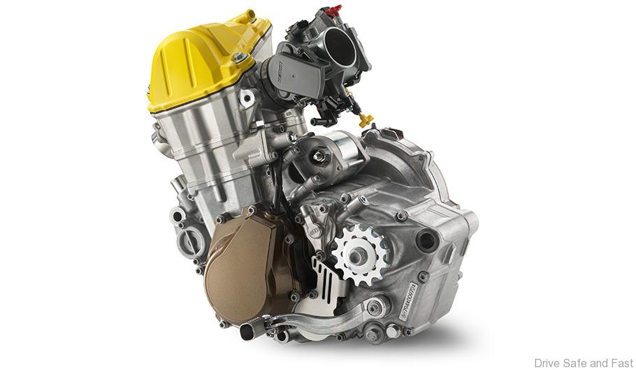 The new engine is now 23 mm shorter, 23 mm narrower and 9 mm lower. Every internal component has been revised and repositioned to reduce the weight by 1.8 kg for an overall weight of 27.8 kg. The SOHC cylinder head has also been redesigned to be 350 g lighter and features optimised combustion chamber and ports. The crankshaft has 10% more inertia and has been repositioned 9 mm backwards and 7 mm higher. The new crankcases are now significantly more compact and lighter.