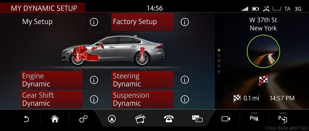 Jaguar Configurable Dynamics technology, optional on all V6 models, provides the ultimate in control and enables the driver to individually tailor settings of the dampers, steering, engine and eight-speed automatic transmission.