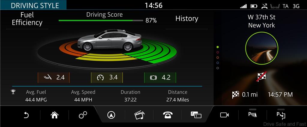 To minimise driver distraction the all-new XF offers a colour laser head-up display. Compared to competitor systems, this technology is smaller, lighter, and generates high contrast images which are easier to read in strong sunlight.