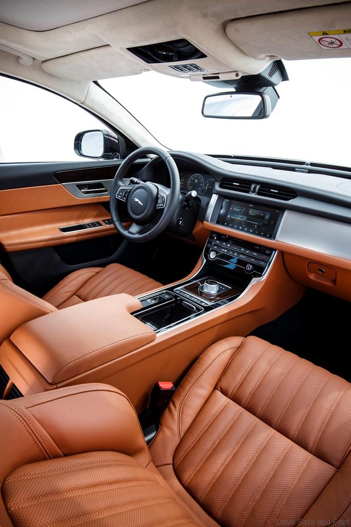 The all-new XF is 4,954mm long: at 2,960 the wheelbase is 51mm longer than before, the front overhang 66mm shorter. Though 7mm shorter and 3mm lower than the original XF, rear seat space is class-leading thanks to 15mm more legroom, 24mm more kneeroom and up to 27mm more headroom than before. Aerodynamics are also superior: the drag coefficient drops from 0.29 to just 0.26.