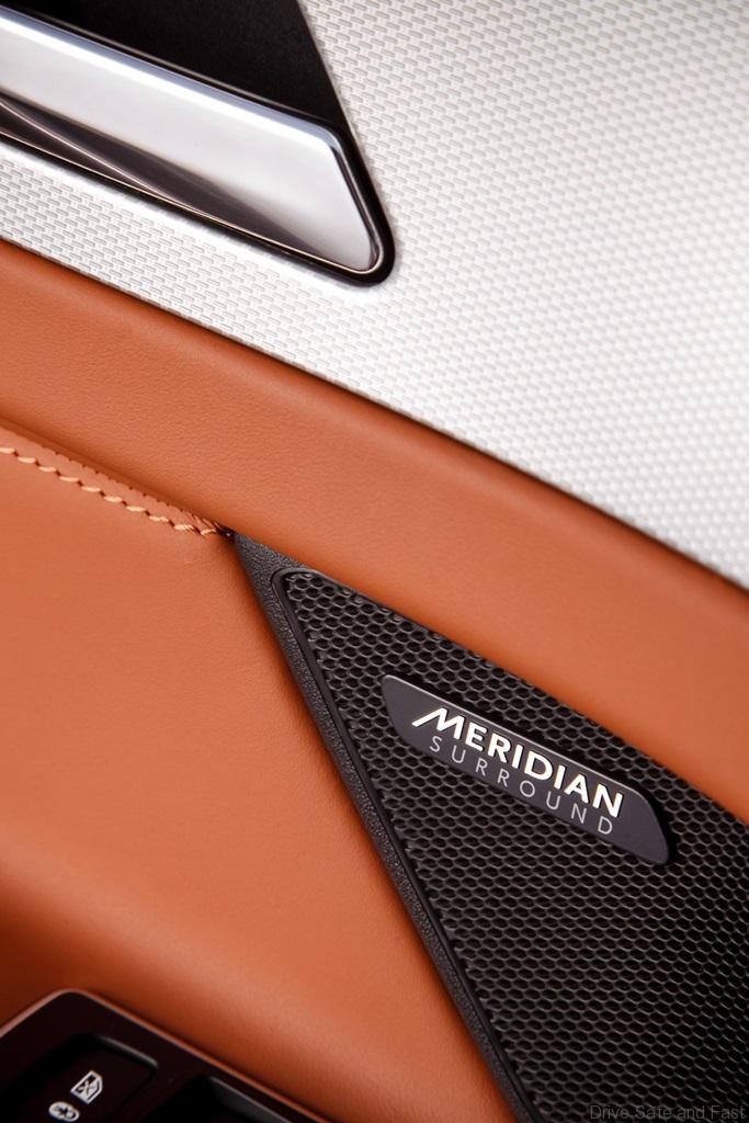 To enrich the experience there’s also natural voice control, supporting commands such as ‘more like this’ for track selection, and 10GB of the 60GB solid-state drive is dedicated to media storage, enabling Gracenote album art to be displayed. Audio systems include the exceptional 17-speaker, 825W Meridian digital surround sound system.