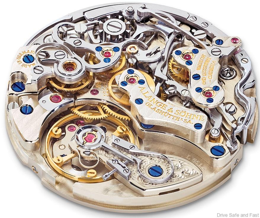 Lange manufacture calibre L951.5; manually wound, crafted to the most exacting Lange quality standards, decorated and assembled by hand; precision-adjusted in five positions; plates and bridges made of untreated German silver; balance cock engraved by hand