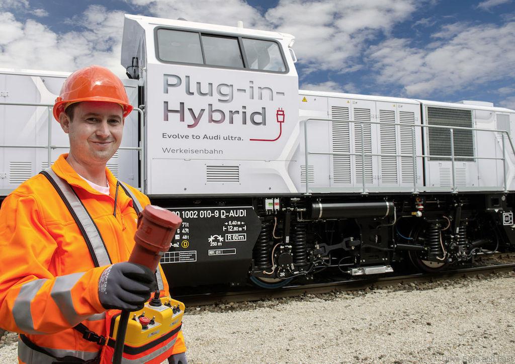 The new locomotive runs without any emissions inside the plant buildings and can operate for up to two hours at a time in purely electric mode. Its battery is plugged in during breaks for recharging with CO2‑free electricity, or is supported while in motion by a diesel engine. Hybrid locomotives are significantly quieter and their CO2 emissions are reduced by half compared with conventional locomotives at the plant. This means that the plug‑in‑hybrid locomotive emits up to 60 tons less CO2 each year. For the Ingolstadt plant, this is another stage on the way to the CO2‑neutral factory.