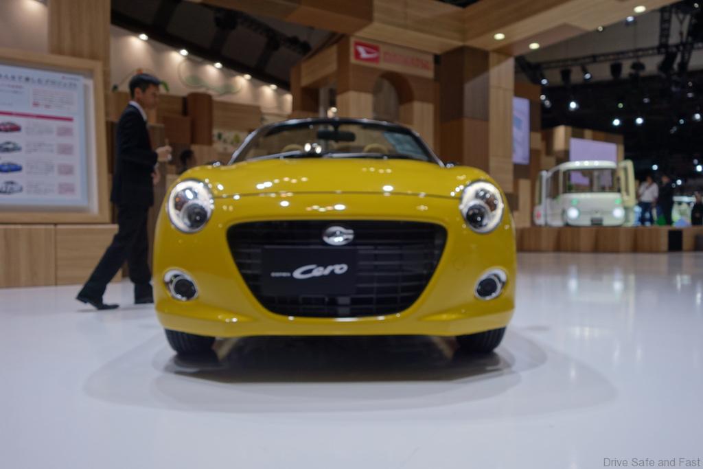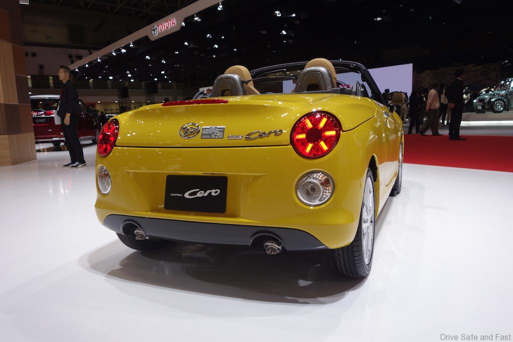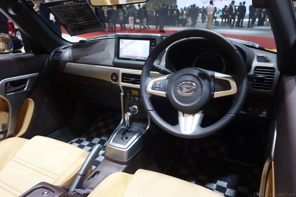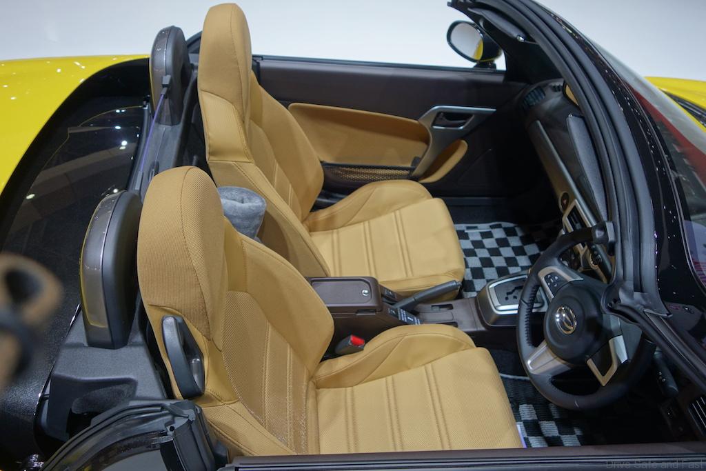 Power is sent to the front wheels via a CVT gearbox. Priced at 1,852,200 Yen, the Cero is also offered with a 5-speed manual option, which oddly enough is slightly more expensive at 1,873,800 Yen. The unit on display had an interior finished in beige and dark plastics and featured a relatively large LCD screen for infotainment as well as a unique 3 vent air conditioner system despite having room for 2.