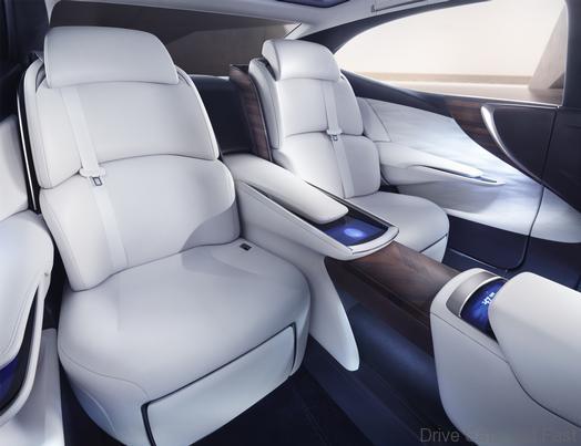 Highlighting the new technology inside the LF-FC is an advanced human machine interface that can be operated by simple hand gestures, without the need to touch a panel or controls. A small holographic image on the center console indicates where the system can interpret your hand gestures to control the audio system and ventilation. At the heart of the LF-FC is a high output fuel cell power system that energizes the rear wheels, and also sends power to two in-wheel motors in the front, making the LF-FC all-wheel-drive.