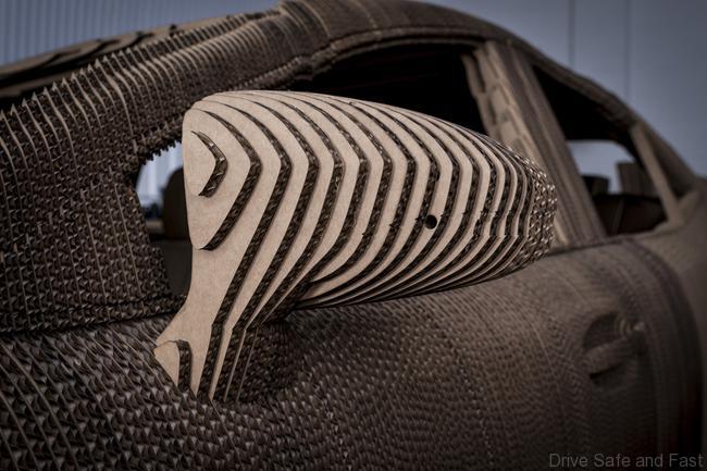 Each layer was given its own reference number to help ensure it was assembled in the right sequence and the entire assembly was done by hand. A water-based/wood glue was used, which had to be left to set for 10 minutes after each application. Accuracy was vital, as changes couldn’t be made once the glue had dried. In all, the Origami Car took three months to build.