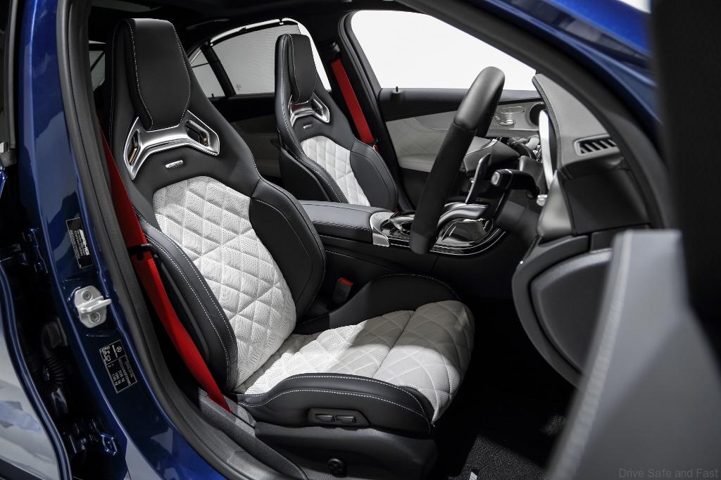Performance seats are available as an alternative to the standard sports seats in ARTICO man-made leather/DINAMICA microfibre with AMG badges in the backrests: these allow the occupants a lower seating position, and are more heavily contoured for increased lateral support.