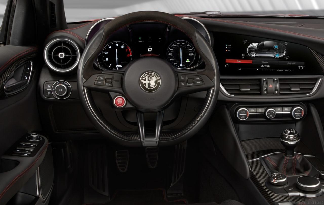 With its muscular proportions and a “pure” design ethos of passion, lightness and simplistic elegance “clothing” its class-leading technical layout with near perfect 50/50 weight balance, the all-new 2017 Giulia Quadrifoglio exudes stunning and functional Italian style with a finesse of Alfa Romeo heritage, athletically taut lines and sculptural details.