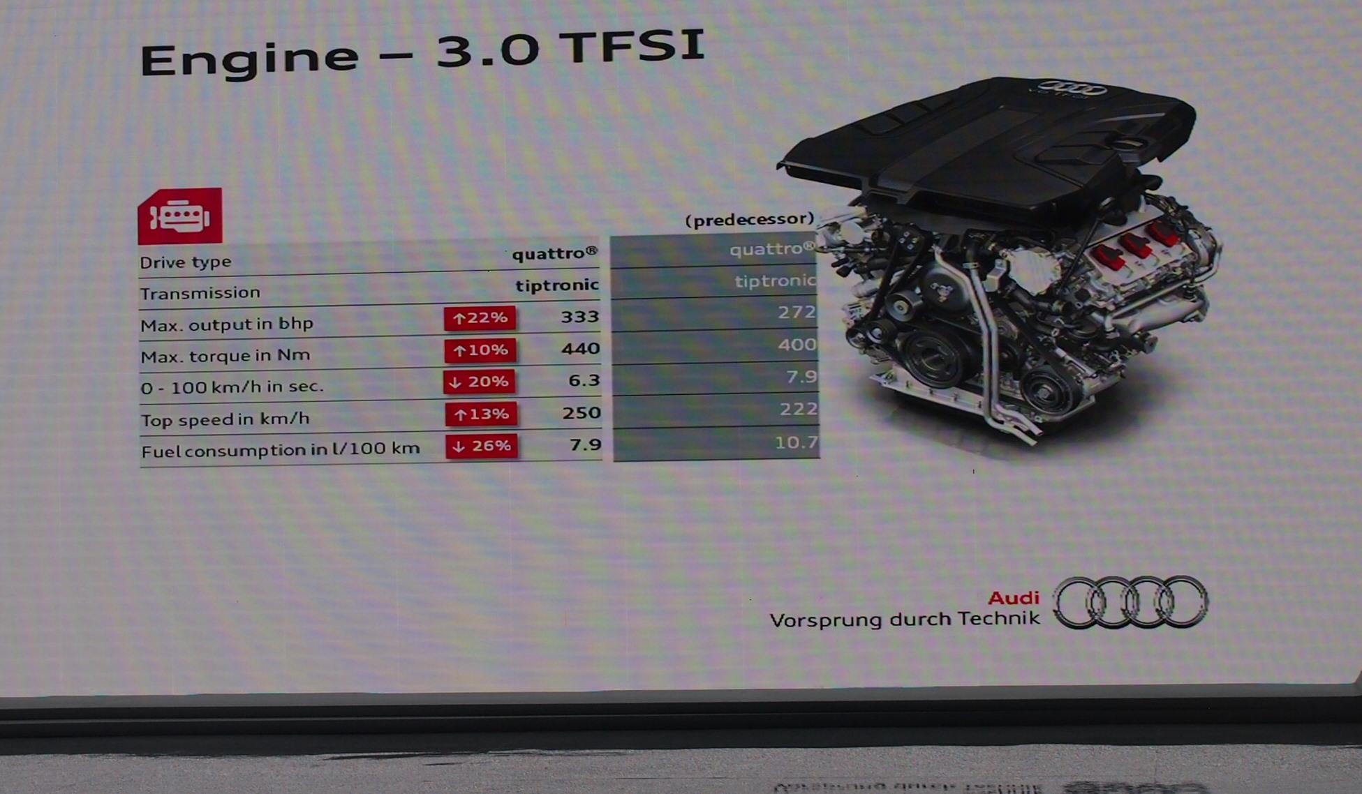 The new Audi Q7 SUV comes with the latest generation 3.0 TFSI V6 petrol engine with combined demand-controlled direct injection and manifold injection. An 8-speed tiptronic transmission is standard, and this allows the engine to produce a maximum output of 333 hp and a total of 440 Nm of torque from 2,900 to 5,300 rpm.
