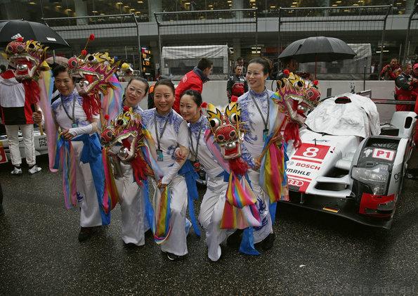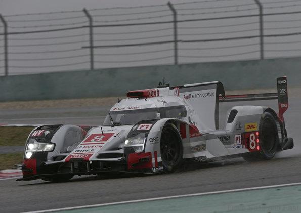 Lucas di Grassi/Loïc Duval/Oliver Jarvis (BR/F/GB) were leading the race just like their teammates Marcel Fässler/André Lotterer/Benoît Tréluyer (CH/D/F) during the third hour. In constant rain, the Audi R18 e-tron quattro car was completely in its element. The Audi drivers set good lap times although the special track at Shanghai favors race cars with more powerful hybrid systems.