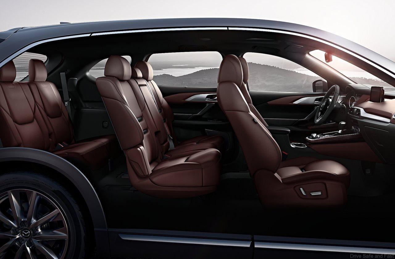 Inside, the CX-9 is available with auburn-colored Nappa leather, Japanese rosewood and aluminum in the flagship Signature trim level. Safety features include a suite of automatic braking, active cruise control and lane-keeping assistance systems.